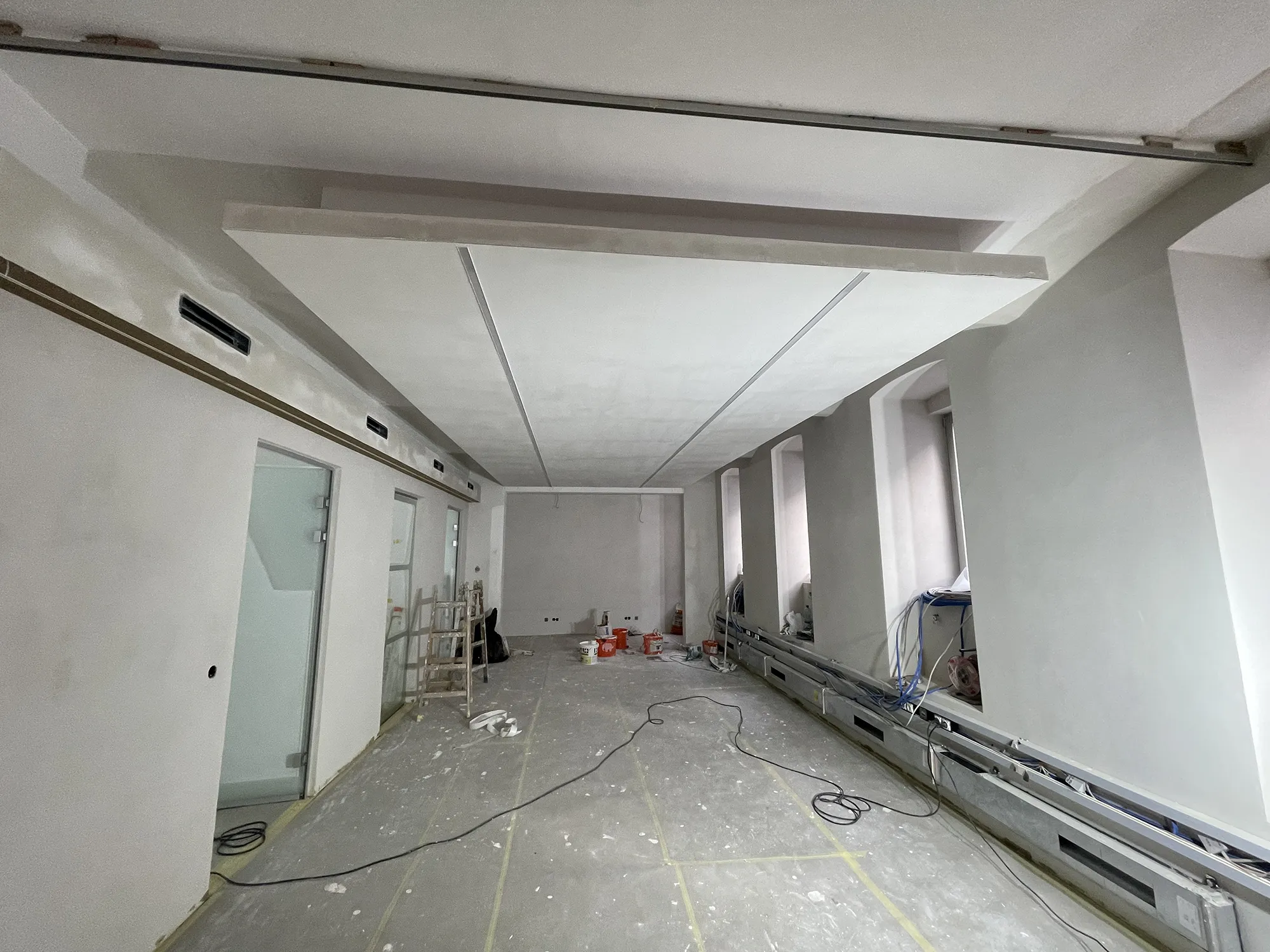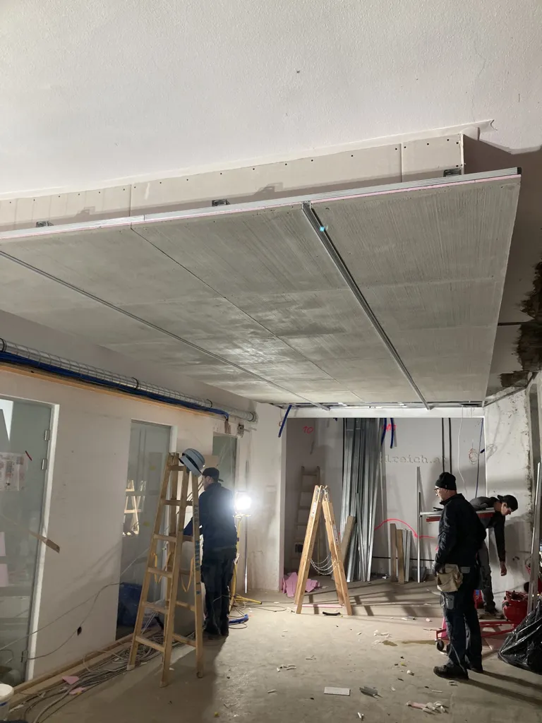 abaton paneel installiert als Deckensegel (Büro), in Wandinstallation (Büro) und in geschlossener Decke (Besprechungsräume) fungiert als Hauptsystem für Kühlung und Heizung im aufwendig sanierten Bürohaus in Wien.