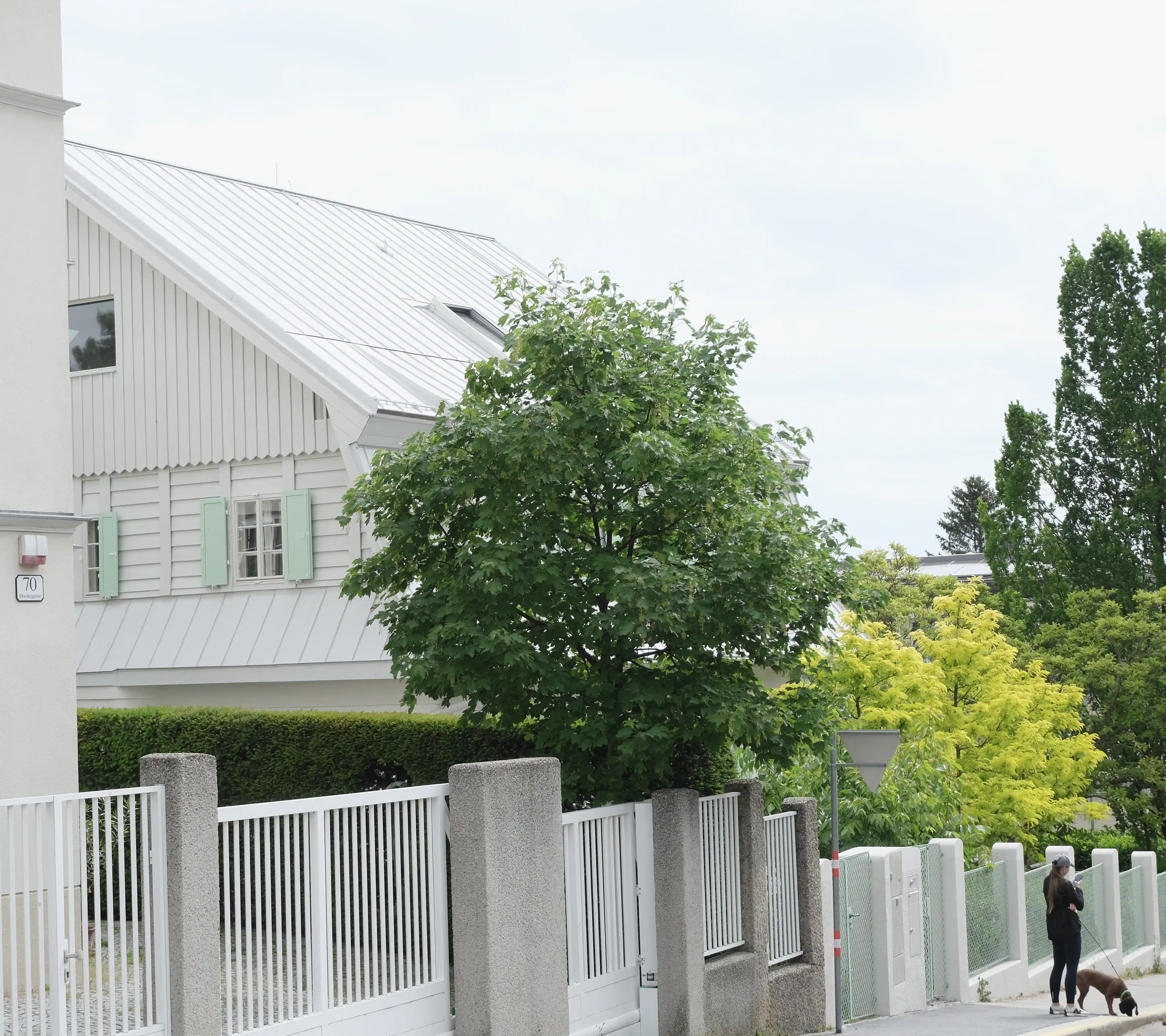 Die denkmalgeschützte Fassade der Villa wird sorgfältig restauriert. Merkmale wie Erker, Fensterläden und das steile Dach bleiben erhalten. Modernste Dämmmaterialien sorgen zusätzlich für verbesserte Energieeffizienz, ohne die historische Optik zu beeinträchtigen.